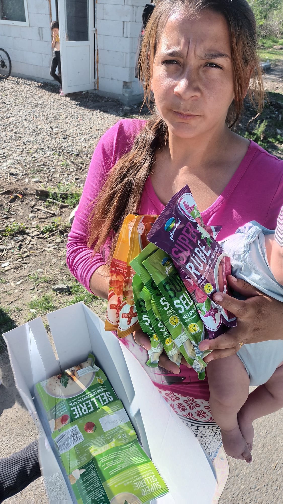 Verteilung von Lebensmittel aus unserer letzten Lieferung in Rumänien.